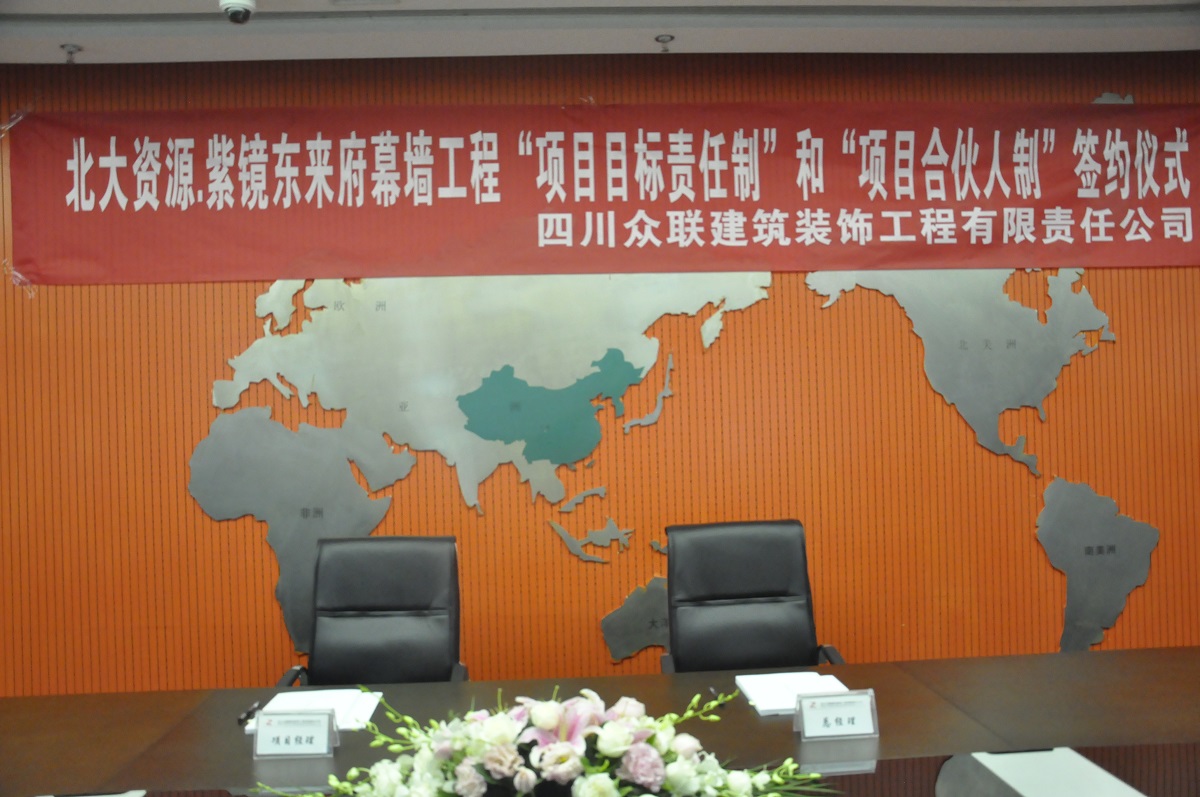 为实现公司战略规划目标和精细化管理要求,让公司全员更加深入的领会企业文化,树立“同心、同德、同创、同享”的企业价值观。公司于2019年7月30日在会议室举行了“北大资源.紫境东来”幕墙工程“项目目标责任制”和“项目合伙人制”现场签约仪式,公司正式启动“项目目标责任制”和“项目合伙人制”。