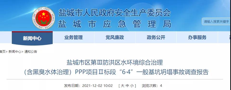 12月2日,盐城市应急管理局公布了一起基坑坍塌事故调查报告。